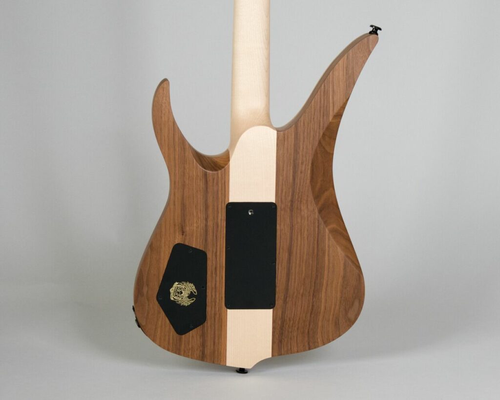 Body: Solid Body Walnut 3 ply. Figured Maple Top 2ply.
