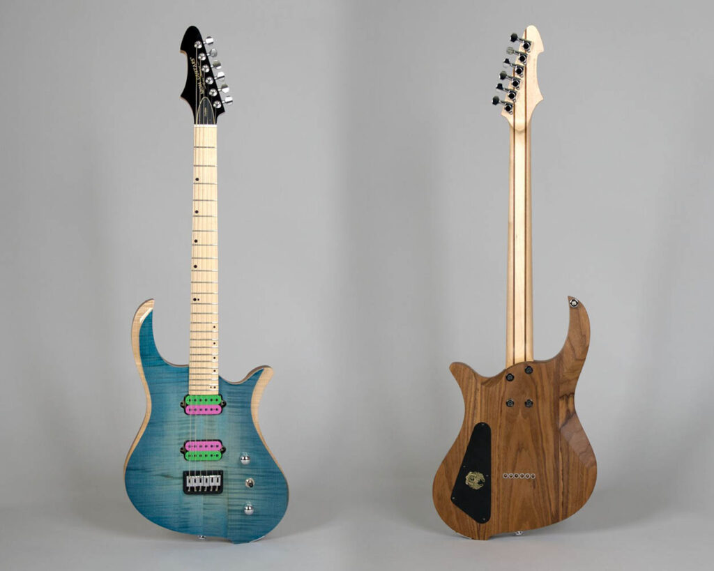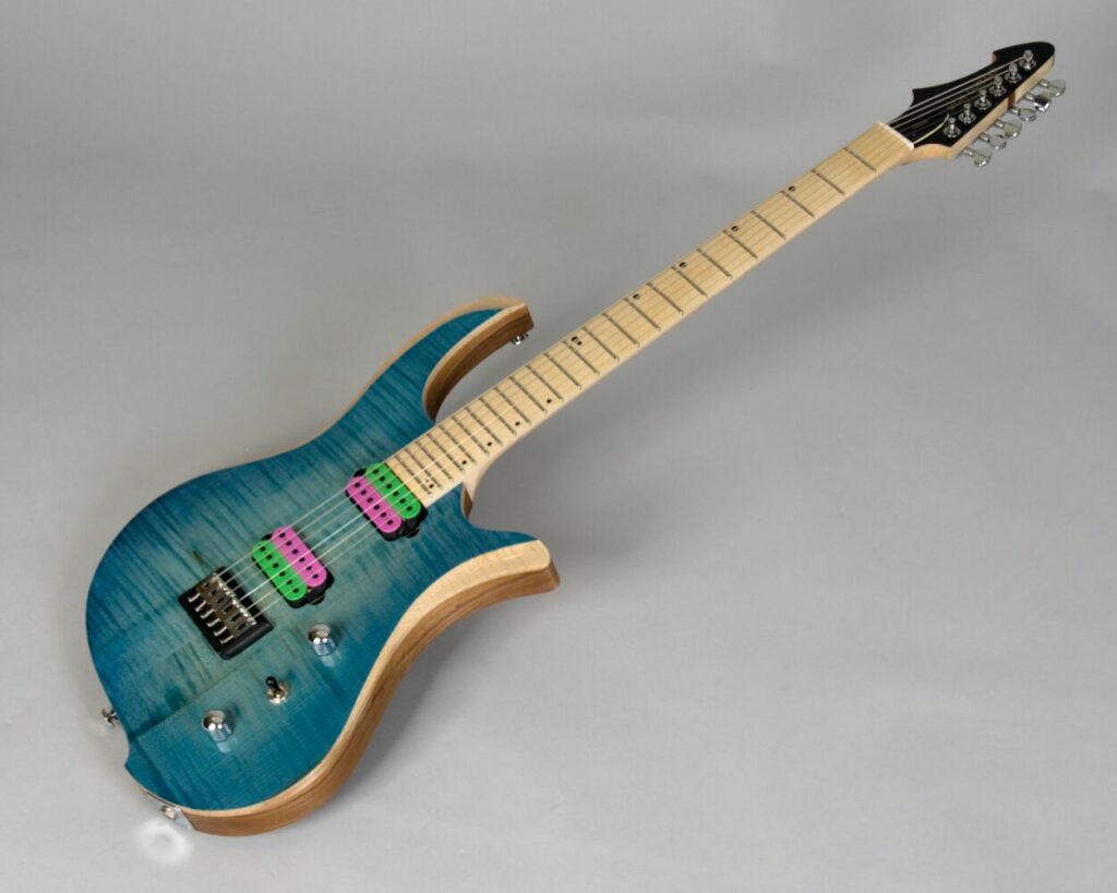 Finishing: High Gloss Blue Crystal Stain Top, Natural Satin Back/Sides, Oil/Wax Neck, High Gloss Headstock