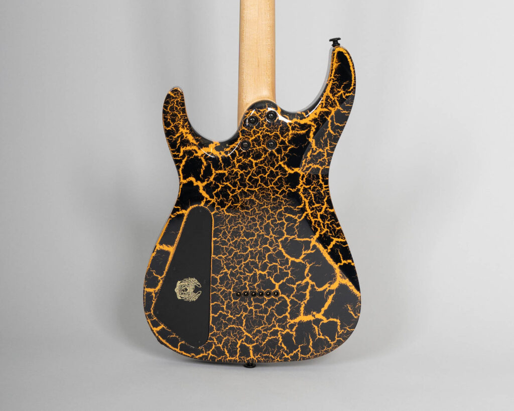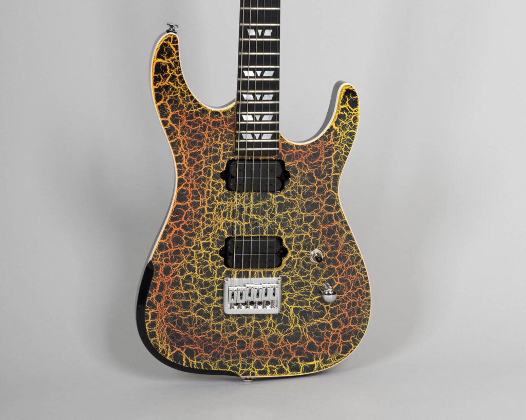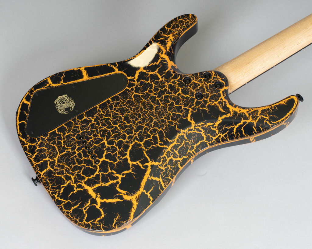 Finishing: High Gloss Orange Lava Crackle, Oil/Wax Neck, Matte Black Headstock
